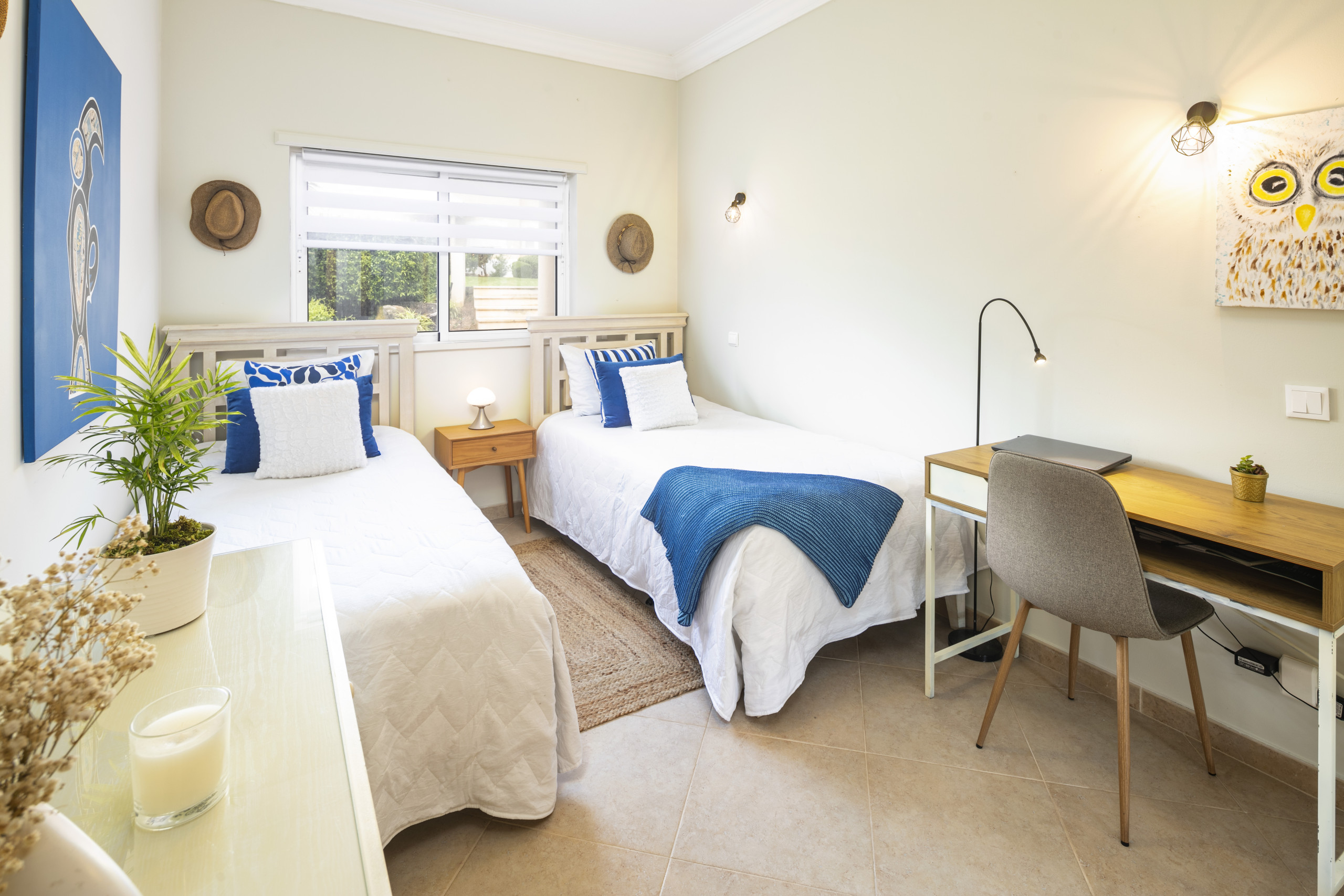 Квартира предлагает две хорошо оборудованные спальни, включая одну двуспальную кровать и две отдельные кровати, что обеспечивает гибкие варианты размещения до четырех гостей. Высококачественный кондиционер поддерживает прохладу в помещении в жаркие дни Алгарве, а бесплатный WiFi гарантирует, что вы всегда останетесь на связи в течение всего вашего пребывания.