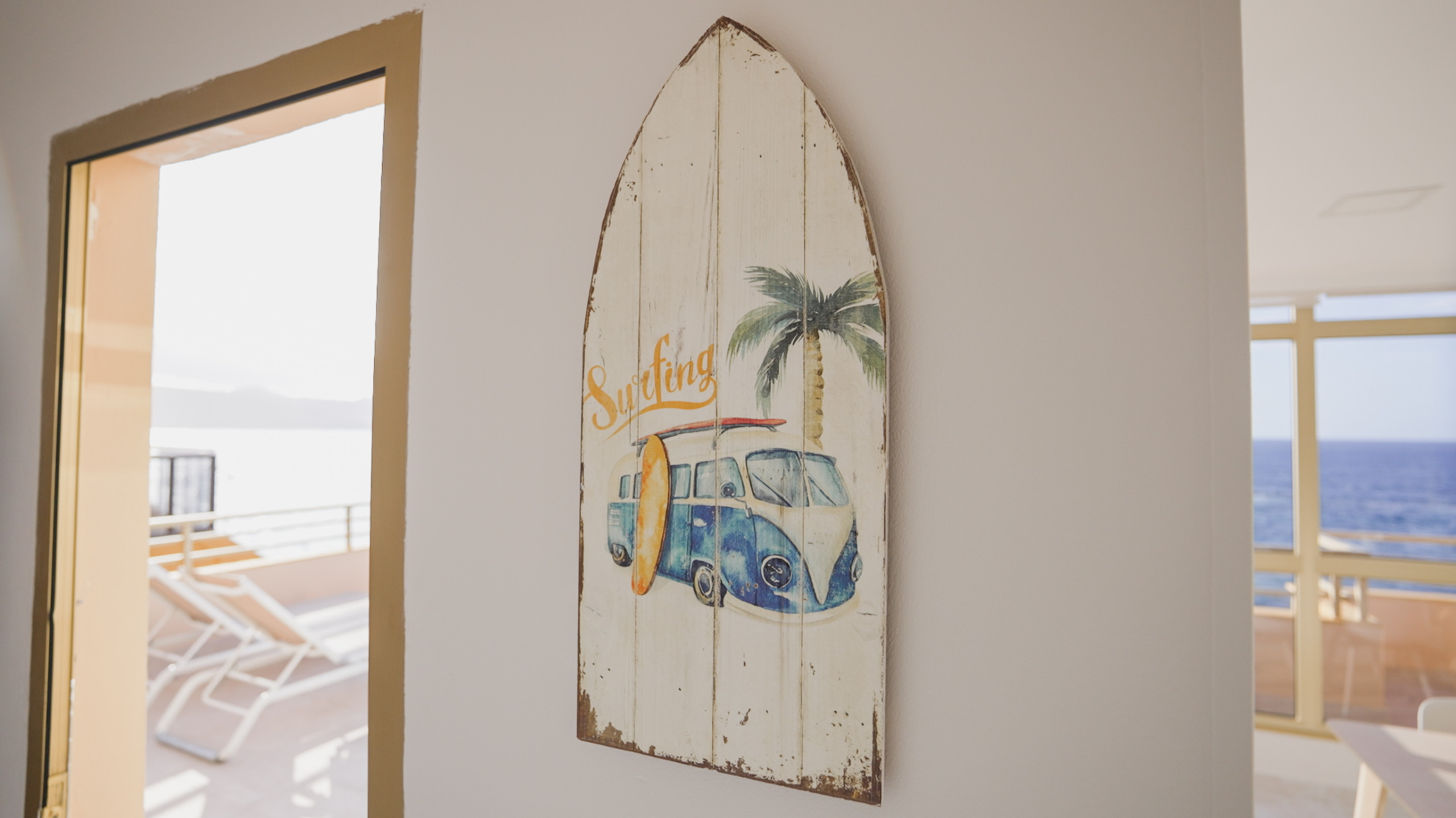 when is too windy there is a drainage pipe outside that produce some bothering noice very noticeable during the night. Also, we needed to close all windows and leave all inside doors open, to avoid noises The mattress is a bit hard. You hear the waves from the apartment, but we liked that.