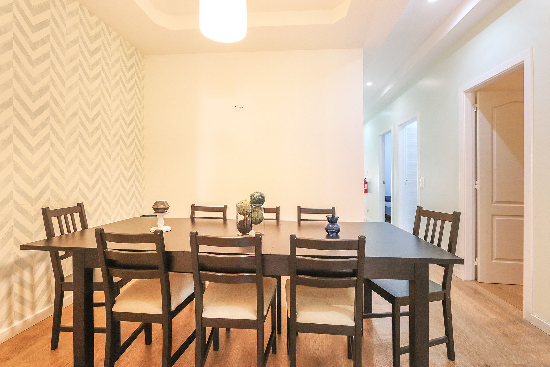 Квартира полностью меблирована, оформлена и оборудована. Дизайн и функциональное убранство придают квартире ощущение дома. Кухня и ванные комнаты оборудованы всем необходимым. Все постельное белье и полотенца предоставляются, а также удобства для первого дня, как гель для душа, туалетная бумага и так далее. Кабельное телевидение и Wi-Fi предоставляются в апартаментах бесплатно. Пять спален, три с двуспальными кроватями, две с двумя односпальными кроватями, в квартире могут разместиться 10 человек.