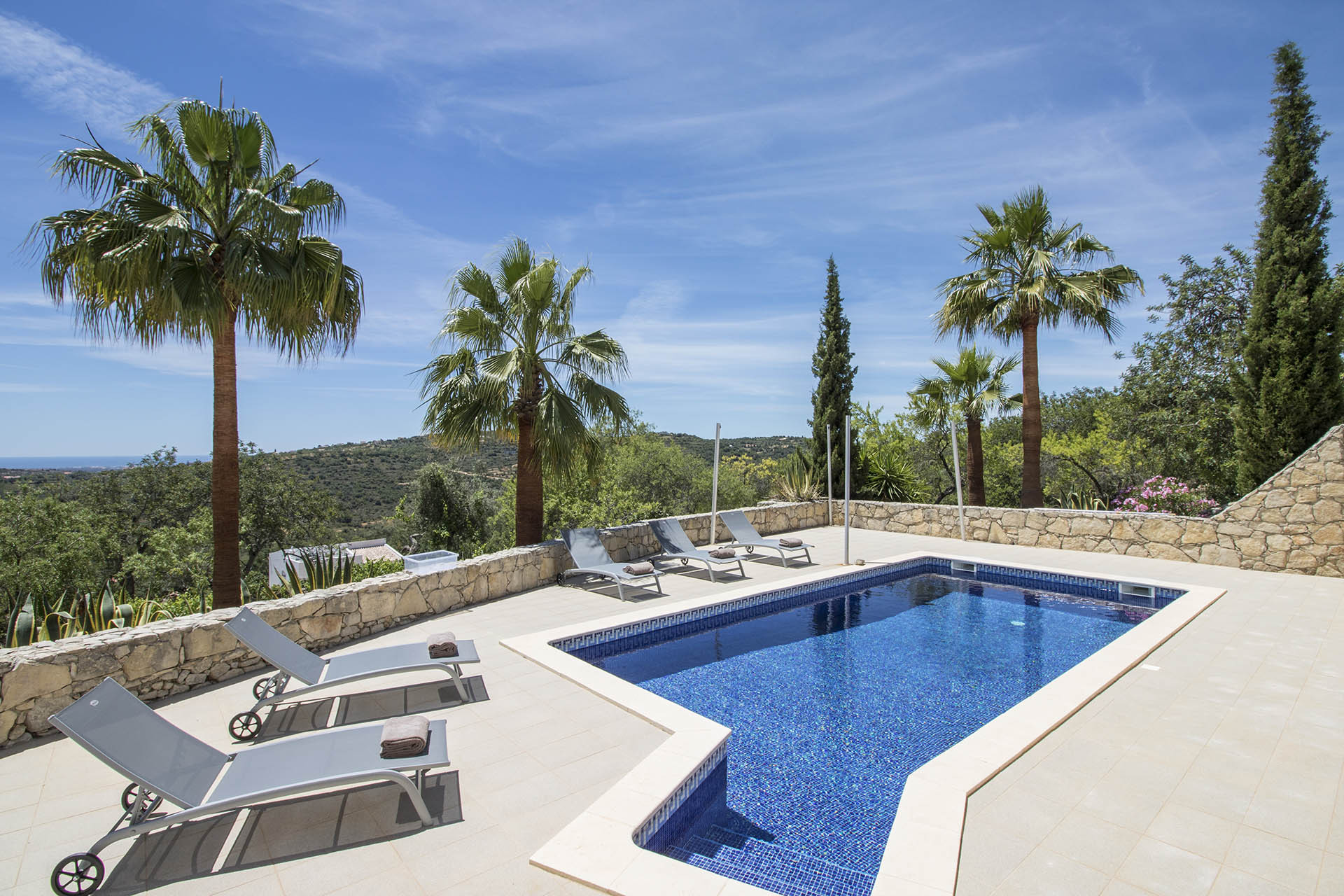 I stayed here with my husband and two small children for 10days. The villa is clean and stylish and the pool and out door eating areas are fab. The villa is on a hill top and offers great views. I would say that this is suited more to couples and families with older children due to the layout inside and outside. However we still managed with our two year old son. We just had to keep a very close eye on him. We hired a car and enjoyed days at the beach and water park. Both approximately 30 mins away. We also enjoyed a trip into Loulé to eat We phoned for exact directions en route and the management company were very helpful