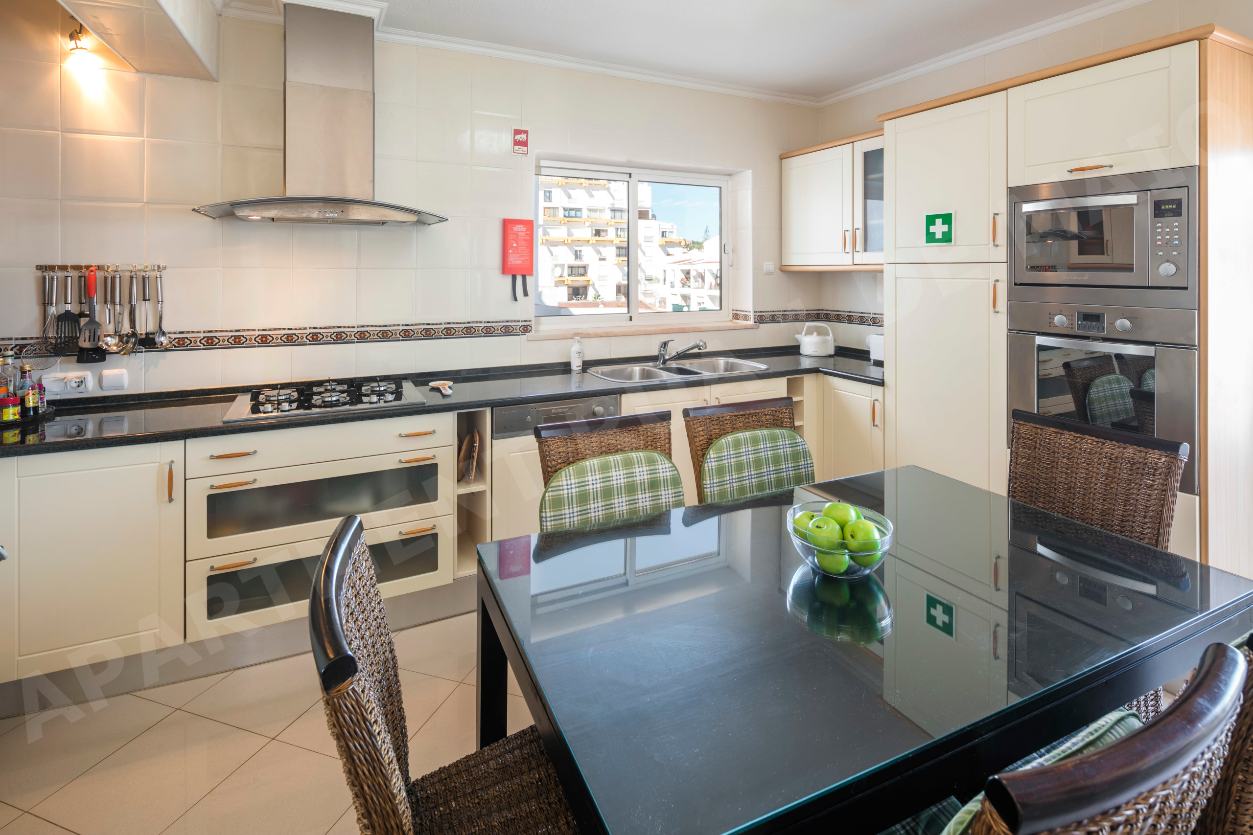 Кухня, оснащена смешанная : электро- и газ, оборудовано холодильник, микроволновая печь, духовка, морозильная камера, посудомоечная машина, столовые приборы, кухонная утварь, кофеварка, тостер, Чайник, Кухонная утварь, Тарелки и миски.