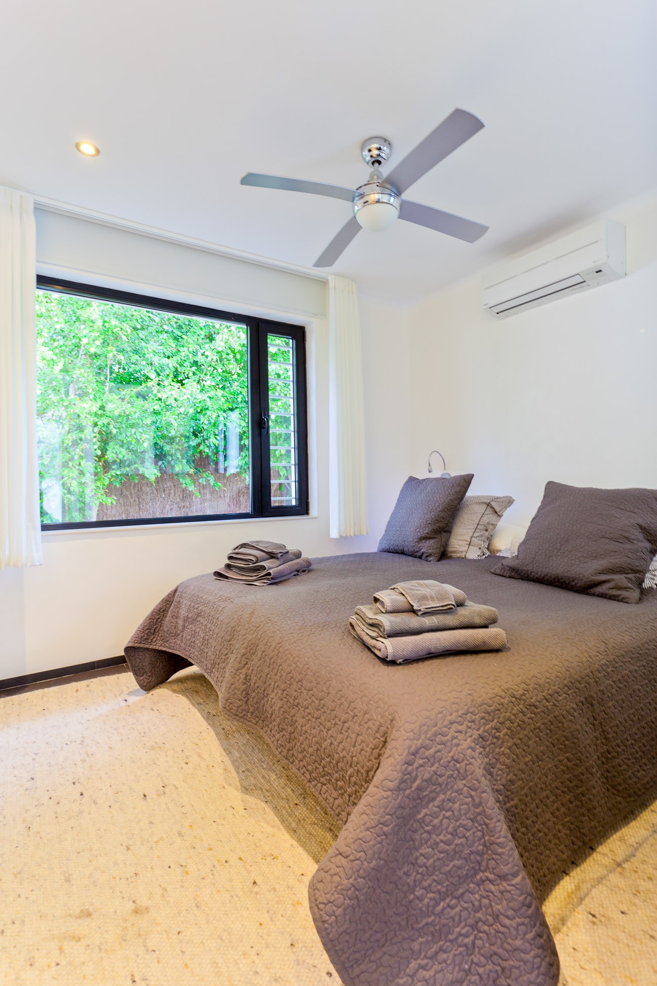 4 bedroom: Located downstairs / basement and has direct access to the pool area. Double Bed, flat screen TV, built-in wardrobe, air conditioning, ceiling fan, bathroom en-suite with shower.