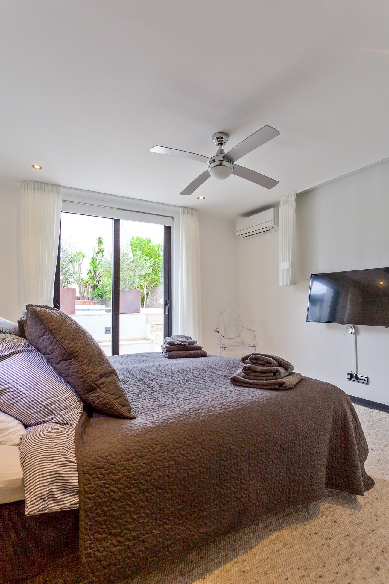 2 bedrooms: Entrance on the ground floor on the other side of the patio compared to bedrooms 1. Double Bed, flat screen TV, built-in wardrobe, air conditioning, ceiling fan, bathroom en-suite with shower.