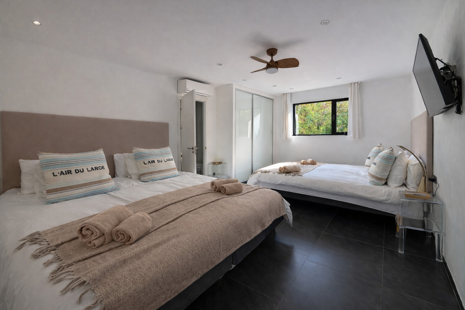 5 bedroom: 2 Double Beds (4 sleeps), flat screen TV, wardrobe, air conditioning, bathroom en-suite.