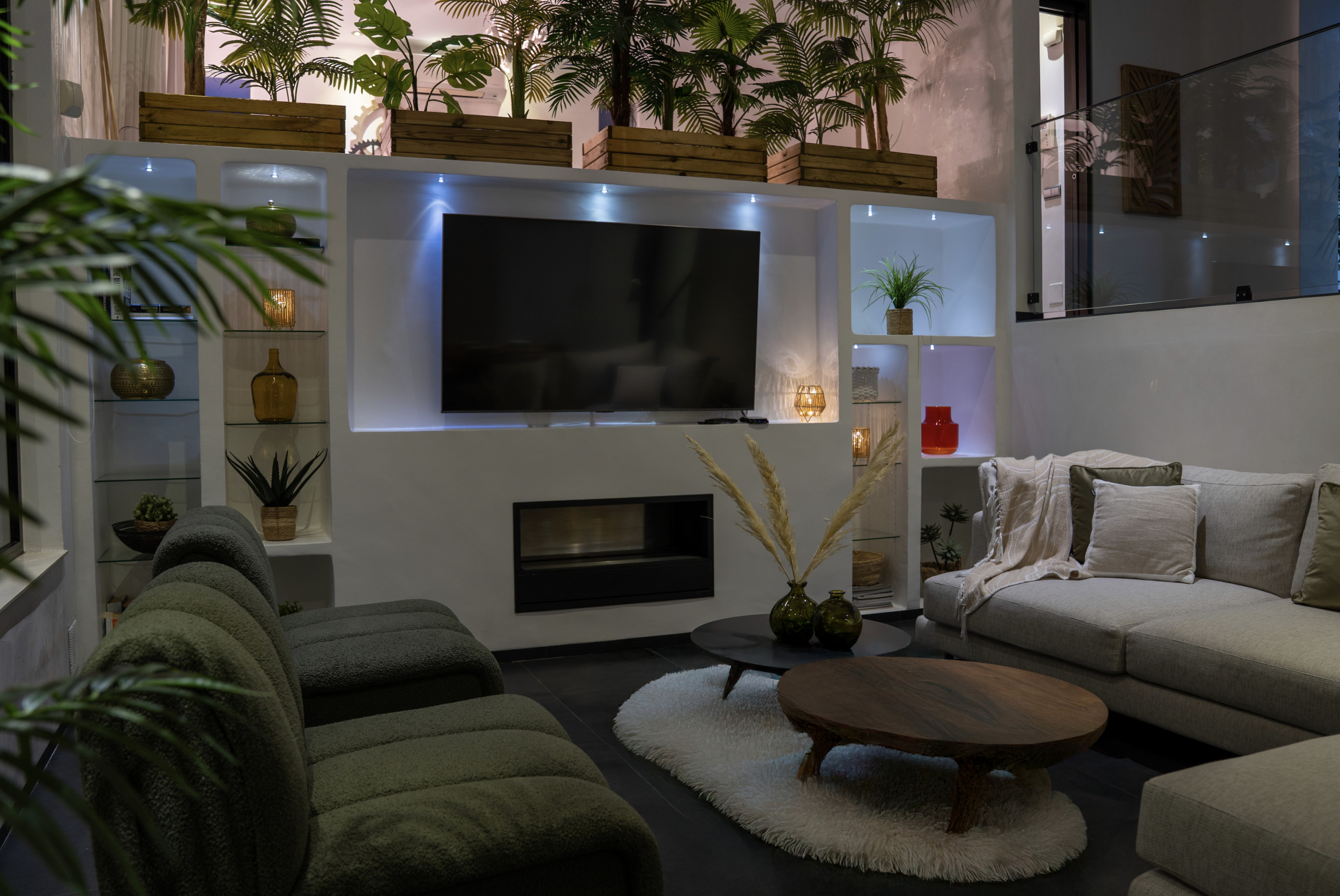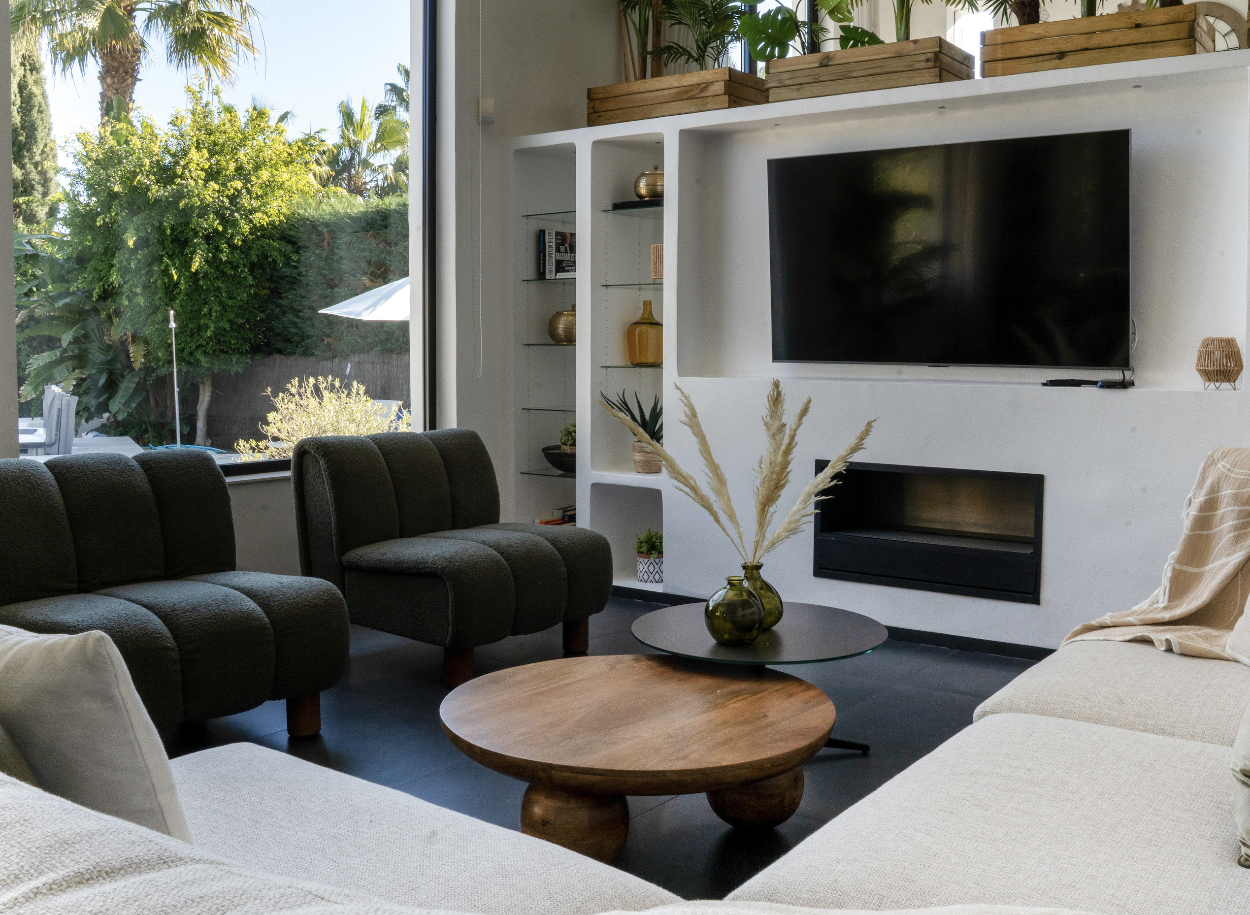 The villa is built in charming Spanish style around an interior patio with a 400-year-old olive tree that gives the house its very own spirit and mindfulness. Beautiful stone floors, glass walls, floor-to-ceiling windows, and quality construction with a tasteful minimalist decor, make this house a unique experience for a memorable vacation.