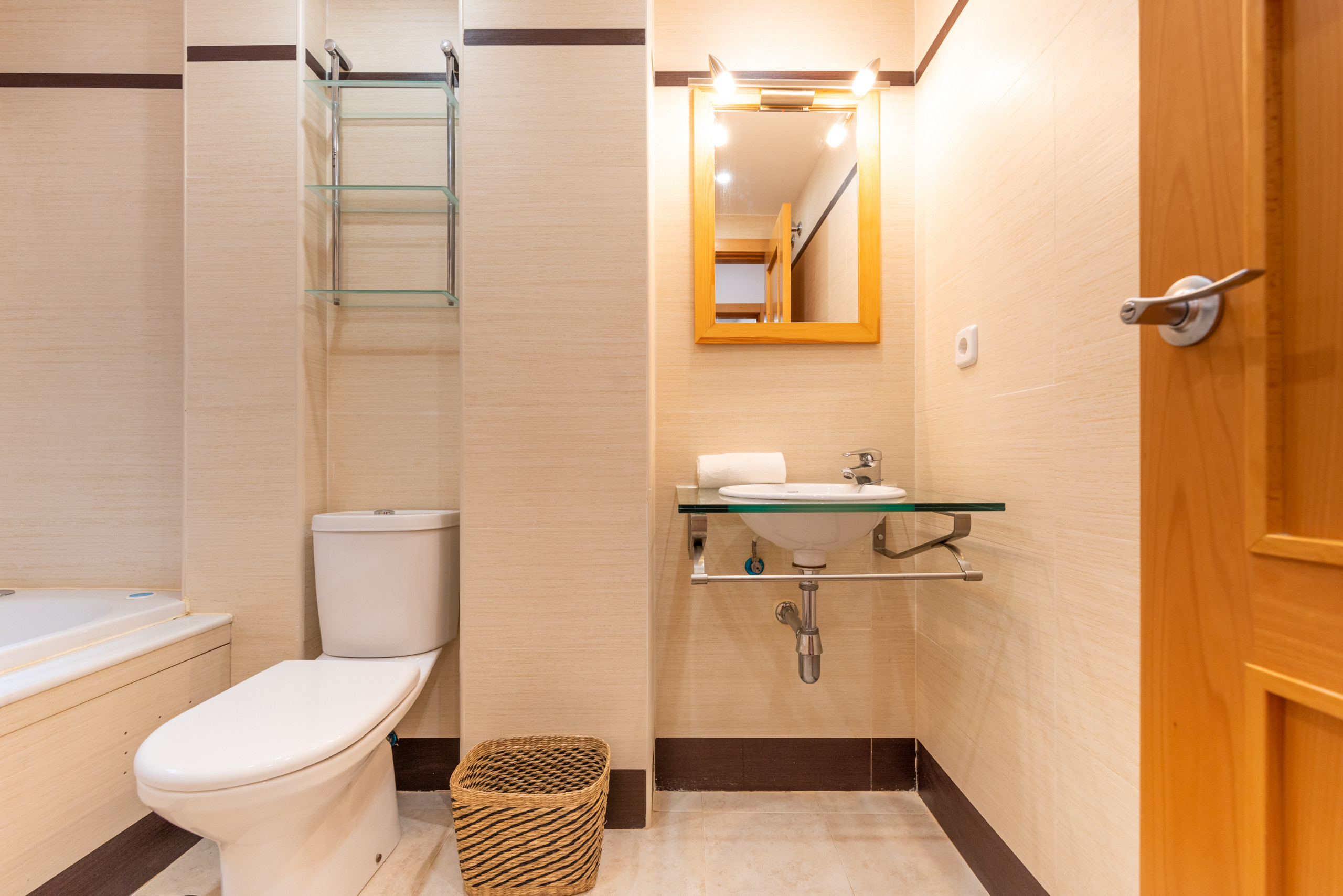 - Master Bedroom: Doublebed with air conditioning, built-in wardrobe and en-suite bathroom with bath, hair dryer and access to the terrace.