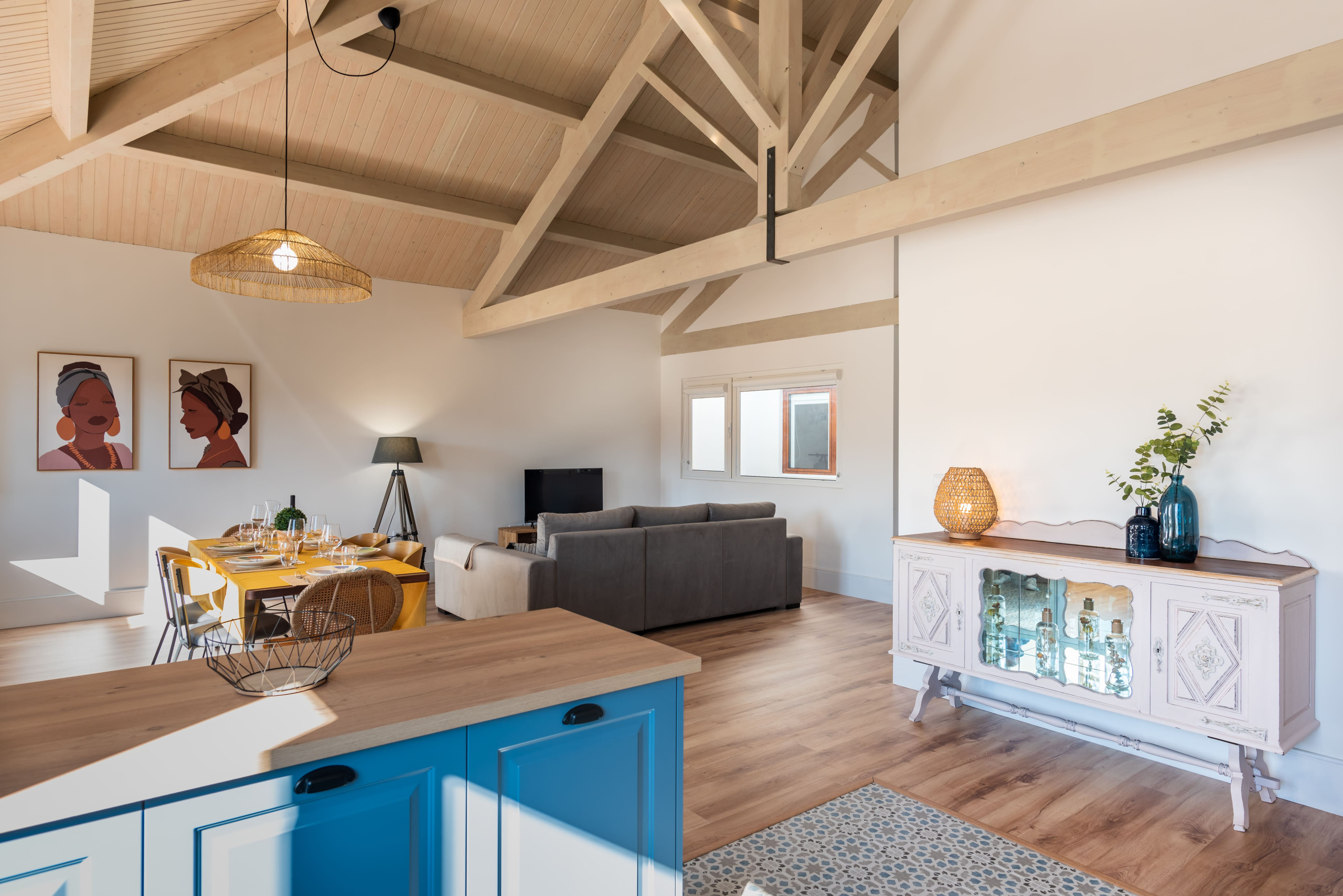 Проживание из 102 кв.м меблировано со вкусом и полностью оборудованный, с видом на горы и бассейн.