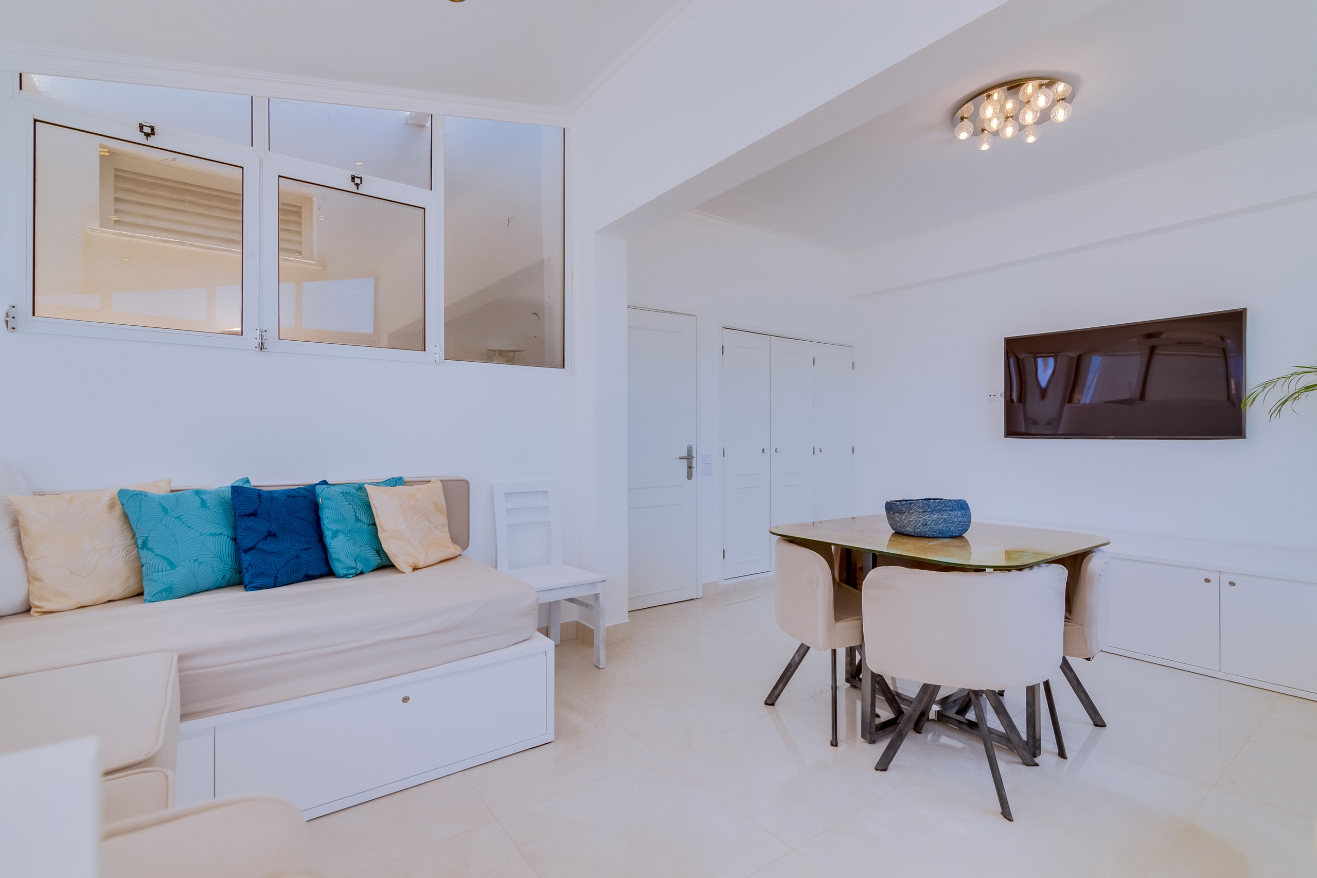 Квартира предлагает 3 спальни, 3 ванные комнаты, светлую и уютную гостиную, а также просторную, современную, полностью оборудованную кухню со столовой зоной. Кондиционирование воздуха доступно во всех комнатах.