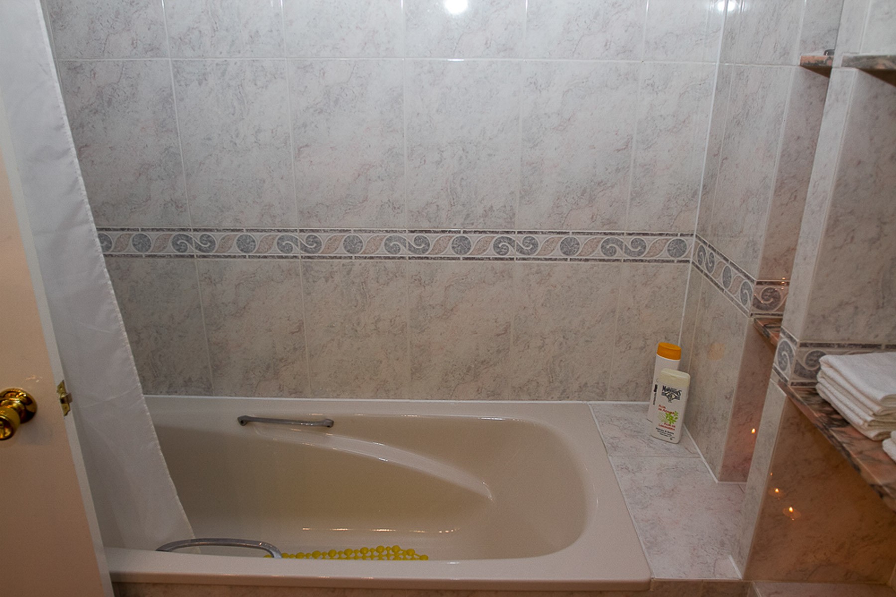 The apartment includes; a nice hall, 2 spacious bedrooms. Master Bedroom contains a double bed, built in wardrobe and bathroom en-suite with bath. The second bedroom contains 2 single beds, built in wardrobe and desk. Both bedrooms have like the rest of the apartment built-in air conditioning. The apartment's second bathroom can be found in the hallway and includes a bathtub.