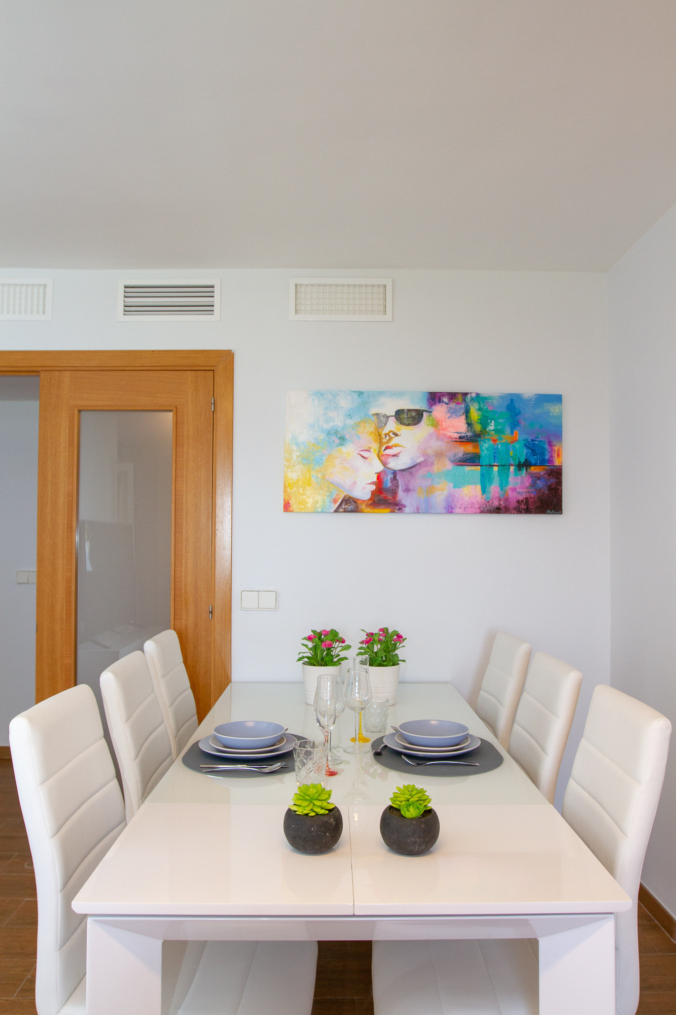 The apartment has four spacious bedrooms. Two of the bedrooms have double beds and the other two have double single beds. There's sleeps for 8 people in total, with the best quality mattresses.