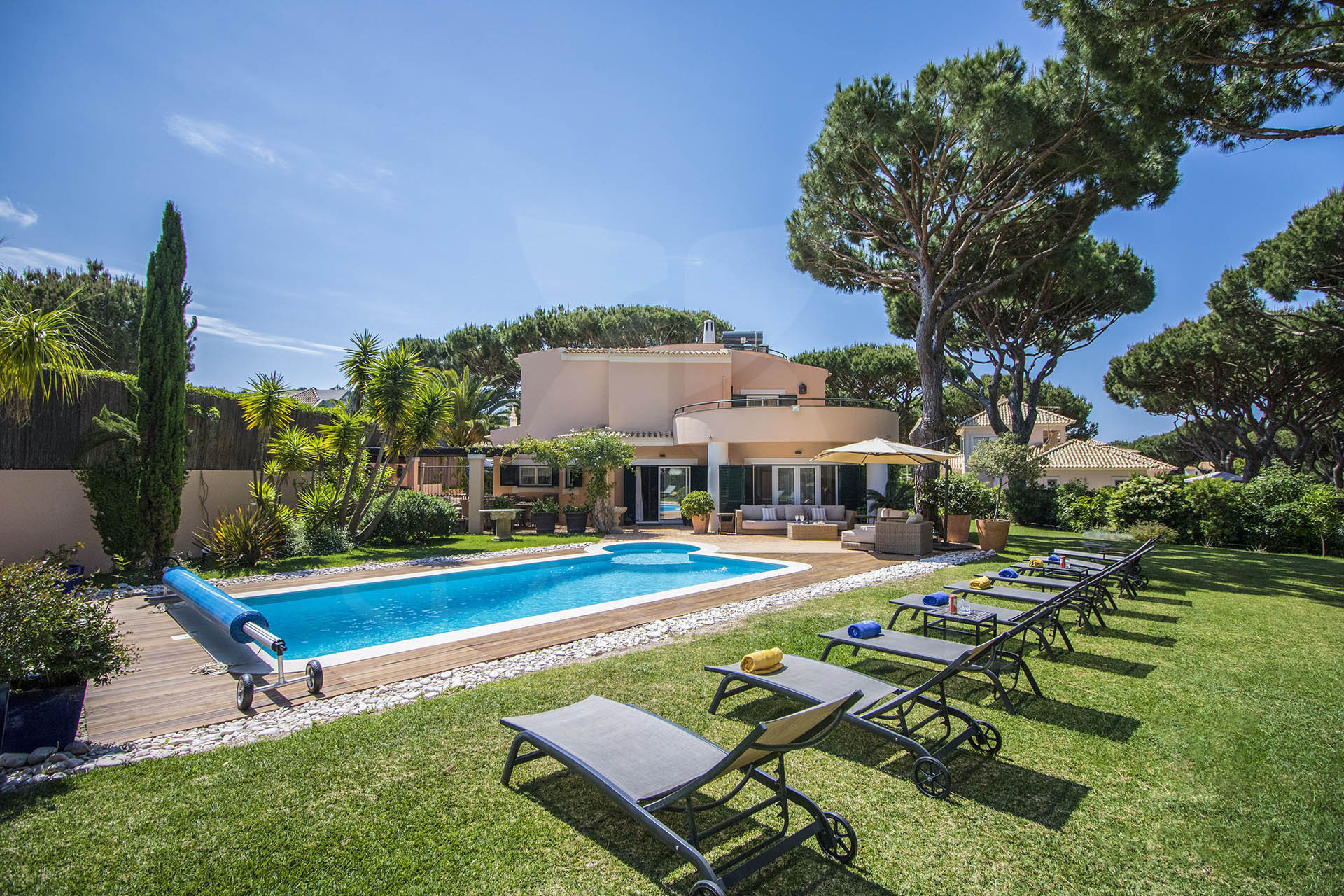 Comprehensive facilities In a very spacious Villa. Ideal for a large group. Swimming pool and gardens large enough for children to play and adults to relax. Bedrooms clean and airy. Pool and table tennis were great for keeping both children and adults occupied. In close proximity to Vilamoura Marina (15 mins walk) and a short taxi ride to the supermarket.