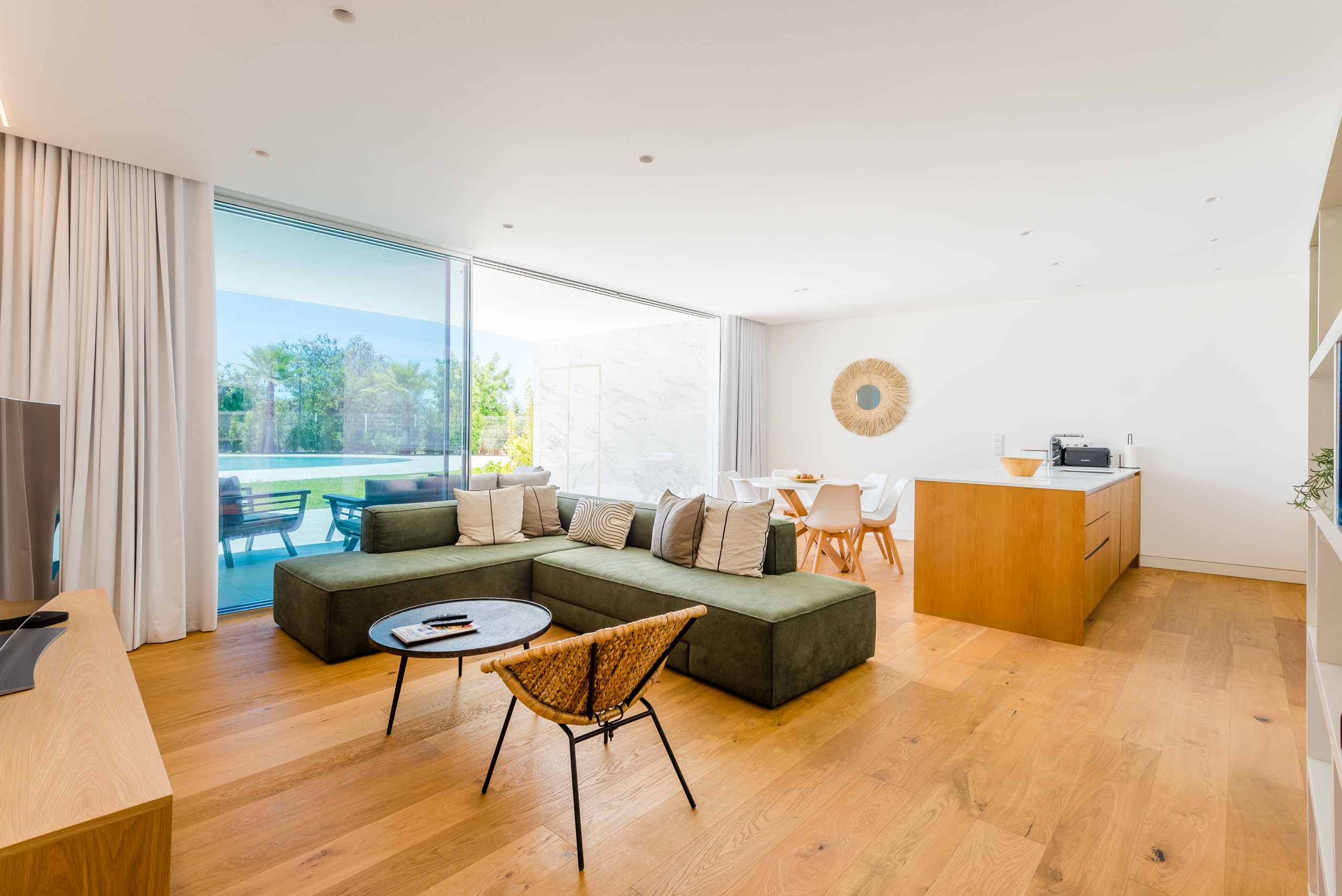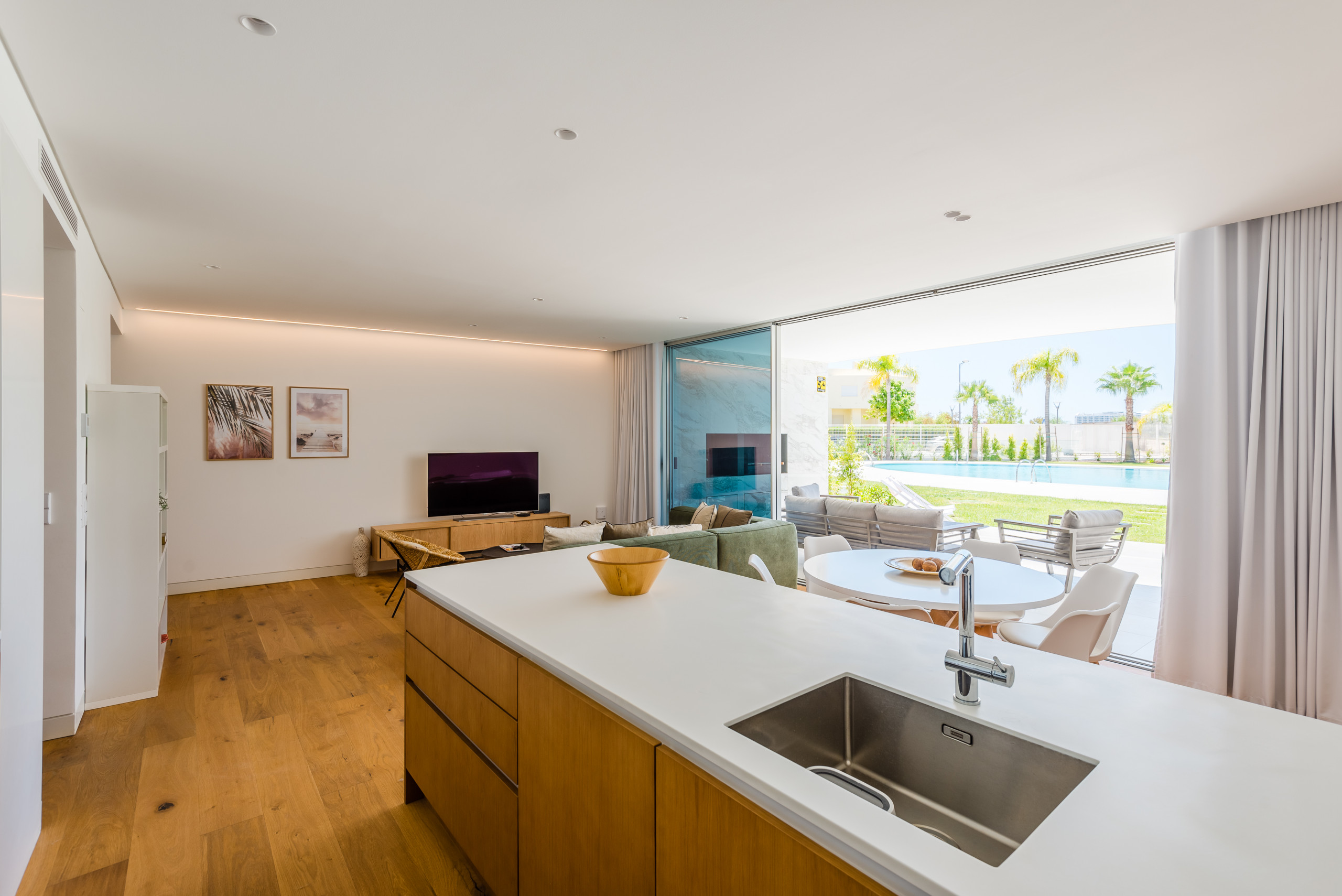 Квартира открытой планировки, поэтому из гостиной и столовой, а также из кухни открывается фантастический вид на общий бассейн и сад. В задней части квартиры находится большая терраса, где можно посидеть на свежем воздухе, а также поставить два шезлонга и принадлежности для барбекю.